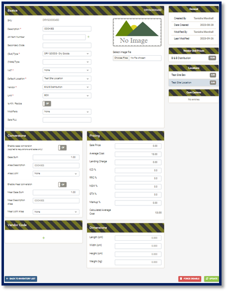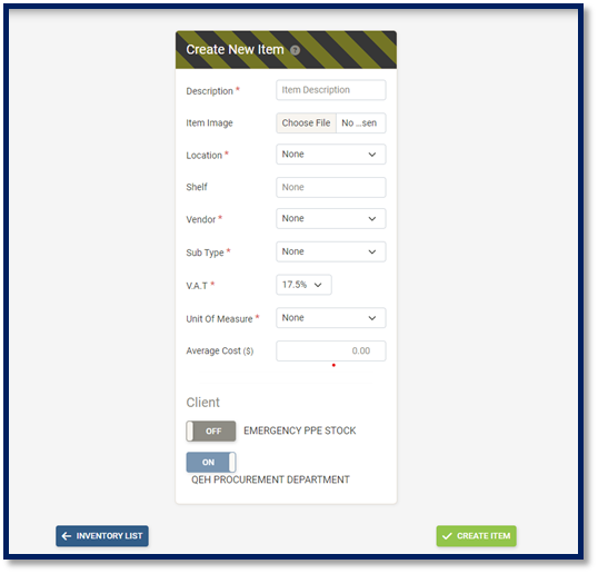 Note: Please note all fields displayed on the page except Item image and Shelf are required.