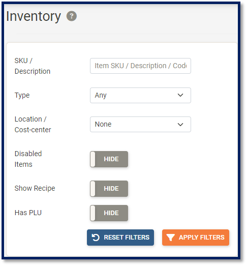 button and the Inventory List is displayed:Search by SKU, by Description or Barcode